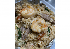 Fried rice with choice of Chicken or Pork or Tofu, mint leaves, onion and chili. 🌶 (Beef Tri-Tip added $2.00 / Jumbo Shrimp added $3.00)